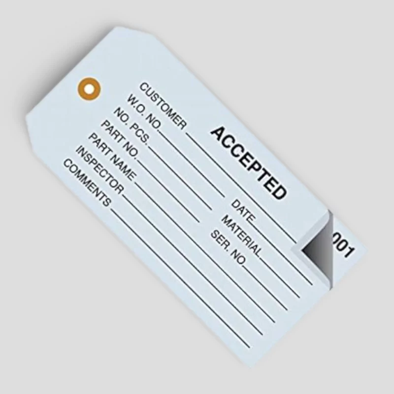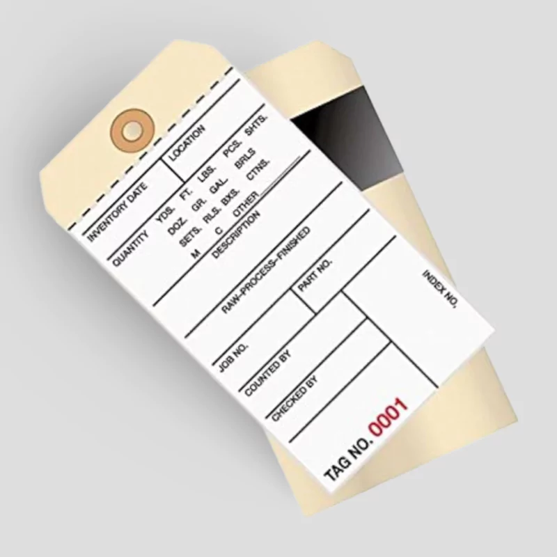 Printing Options: Blank tags for handwriting, pre-printed with your logo and company information, numbered tags for inventory tracking, or custom printed with specific fields and barcodes.