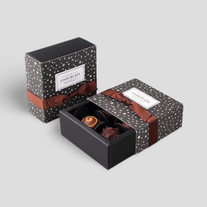 Delight customers with our Small Chocolate Boxes—perfectly sized for single servings, gift assortments, or sample packs. Crafted from high-quality, sturdy materials, these boxes protect your chocolates while showcasing your brand through vibrant, full-color printing and elegant finishes. Customizable in size, style, and design, they’re ideal for chocolatiers, gift shops, and promotional events. Elevate your confectionery packaging with boxes that blend style, protection, and sweetness.
