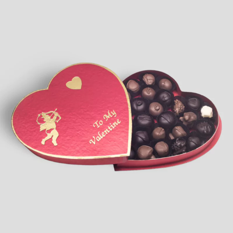 Celebrate love with our Valentines Chocolate Heart Boxes—charming packaging designed to perfectly hold heart-shaped chocolates or romantic assortments. Crafted from sturdy, premium materials and fully customizable with vibrant printing, elegant finishes, and personalized branding, these boxes make every gift unforgettable. Ideal for Valentine’s Day promotions, gifts, or boutique sales, they combine style, protection, and romance in one beautifully crafted package.